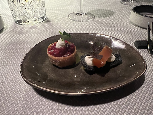 On lui demande un apéritif sans alcool, mais elle ne semble pas connaitre sa carte. Heureusement le maitre d’hôtel arrive à la rescousse et nous propose plusieurs choix. Ouf, il rattrape la sauce. Mais pas de chance pour nous la descente aux enfers continue. Le trio de mise en bouche annoncé à la carte est devenu un duo pour toutes les tables. Le pain qui semble sortir d’un supermarché hard discount est sec. Les plats sont bons mais ne nous transcendent pas. Adagio & Gusto nous promet un voyage culinaire italien mais on n’a malheureusement pas senti l’Italie dans nos assiettes ce soir-là. Ironiquement, les plats que nous avions eus au Pouic-Pouic étaient bien plus italiens. L’attente entre chaque service était très longue, malgré le peu de tables occupées ce soir-là. Sur la réservation, j’avais mentionné qu’on venait pour l’anniversaire de ma femme. Je m’attendais à un petit geste, comme une bougie au dessert comme dans d’autres restaurants gastronomiques. Rien du tout. Le service était froid et impersonnel du début jusqu’à la fin. On n’avait qu’une envie, c’était de partir au plus vite de cet endroit. Cerise sur le gâteau (qu’on aurait bien aimé avoir), l'addition est écrite à la main et nous demandant de payer par cash ou par virement.