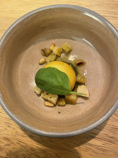 Read moreUn enchaînement de plaisirs gustatifs de l'apéritif, avec ses mises en bouche jusqu'à la fin du repas. Tout est élaboré "maison" avec maîtrise et originalité. Le jeune cuisinier et son épouse oeuvrant dans la cuisine ouverte est très sympathique et prévenant. L' ambiance est moderne, chic, épurée mais chaleureuse avec la table de chêne massif. Une excellente découverte : on...