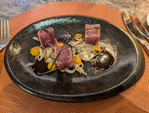 Read moreRegrettable découverte! Nourriture bonne mais service totalement déplorable! On nous a même pas proposé les amuses - bouches alors que toutes les tables autour de nous en ont reçus, on nous a pas proposé du vin à table… j’ai dû me lever pour pouvoir avoir du sucre dans mon café après l’avoir demandé à deux reprises…. Notre table a été ignorée Me donner comme explication que il y’a un serveur malade remplacé par un étudiante incompétente est pas acceptable. J’aurais préféré que l’on me contacte pour me proposer de remettre ma réservation à un autre jour plutôt que d’accepter autant de table alors que le service ne peut pas suivre! Expérience à ne surtout pas re itérer...