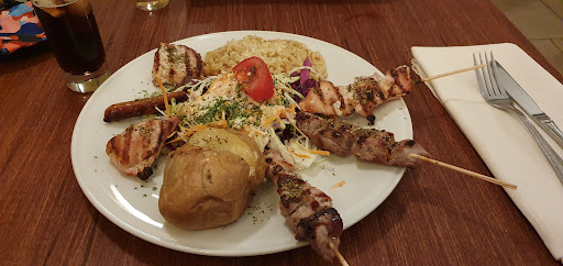 I had the mixed grill (which came with Greek pasta, a large baked potato and lots of salad) and my wife had the dolma. We both thoroughly enjoyed our meals. The portions are quite big.