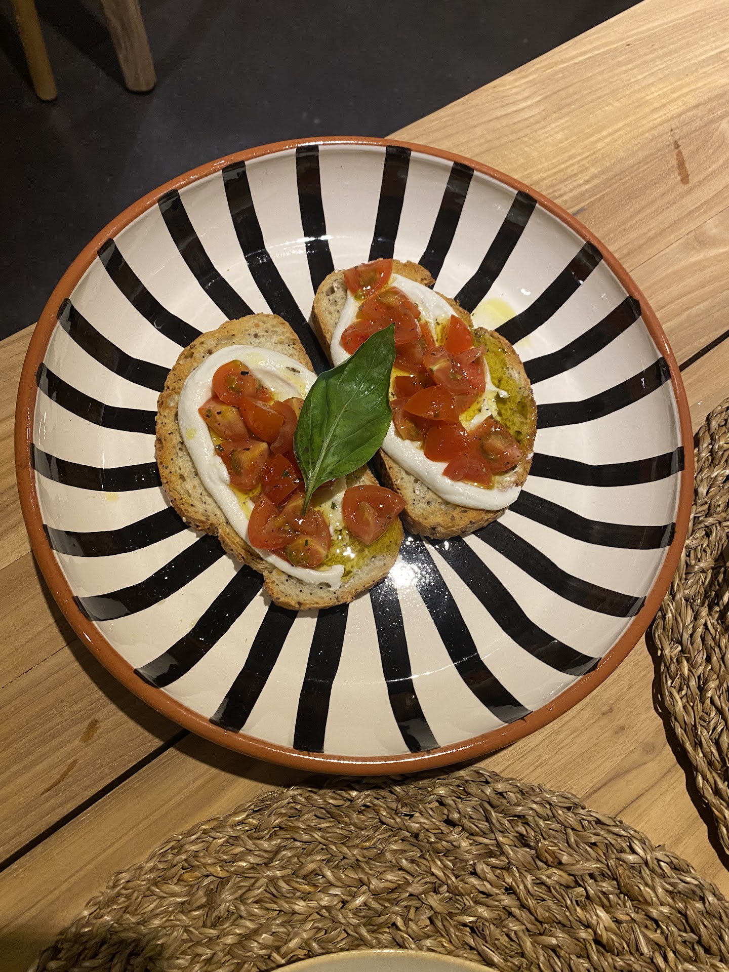 L’intérieur est épuré et contemporain, avec un grand souci du détail : un mélange d’éléments industriels, de touches boisées chaleureuses et de subtiles influences méditerranéennes. L’endroit idéal pour un déjeuner entre amis, un dîner romantique ou une soirée conviviale.