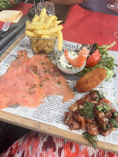 Read moreThe place is located in the center of the town. The menu is extensive enough. There are some local interesting specialties. We had the moules avec de la creme and the platter of the house. The moules were a medium sized portion, tasty. They came with a bucket of fries, too many to eat, but very good. The platter of the house had good meat specialties, fries and salad. Food and drinks are priced ok....
