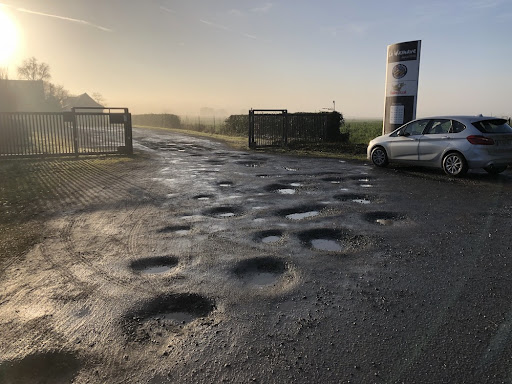 Le 15 janvier 2022, à notre arrivée, nous avons été victime d'une crevaison + déformation de la roue de notre véhicule à cause du parking du restaurant totalement défoncé (voir photo).