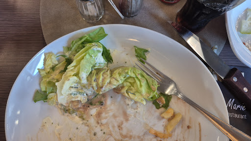 Read moreFrançaise français Vous nâĂȘtes pas les bienvenus. En tout cas câest le ressenti que jâai eu pas de carte bleue Ă©trangĂšre et si vous nâarrivez quâavec de lâespĂšce vous n ĂȘtes pas prĂ©venu enfin si une fois la commande passĂ©e . La cuisine est bonne pour une friterie belge mais une dame blonde qui fait la cuisine certainement au grill nâa pas arrĂȘtĂ© de nous regarder câĂ©tait plutĂŽt gĂȘnant de se sentir Ă©pier avec de la mayonnaise, au coin des lĂšvres⊠âŠcertainement parce que nous nâavions pas de carte bleue et parce que nous Ă©tions français 3,50 ⏠la canette de Ice T câest bien vendu huit euros l assiette de crĂ©ditĂ©es , qui comporte trois rondelles de concombre, une cuillĂšre de carottes RĂąpĂ©es et cinq feuilles de salade il ne vaut mieux pas ĂȘtre vĂ©gĂ©tarien ⊠je nâai plus lâimpression dâĂȘtre chez Marie, mais plutĂŽt chez Marie...