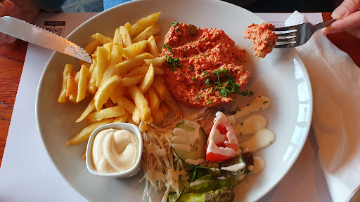 Bien situé tout près d'une place avec un grand parking, une terrasse ombragée vous accueille pour savourer un agréable moment de détente. Bonne carte de choix de boissons, avec une mention toute particulière pour les bières locales, qui sont servies bien fraîches. Le service de restauration est assez rapide et d'un bon rapport qualité prix. Les sauces, quant à elles, sont facturées en supplément. Nous avons tellement apprécié l'ambiance que nous avons testé les glaces en dessert... Tout simplement délicieuses, autant la "Dame Blanche" que "La Belge", une spécialité de la maison à l'eau de Villée, accompagnée de son sorbet saveur citron ou cassis. ATTENTION la maison ne prend pas la carte bancaire... Nous avions oublié de demander... Et il nous a fallut courir pour retirer du liquide au distributeur le plus proche et pouvoir...