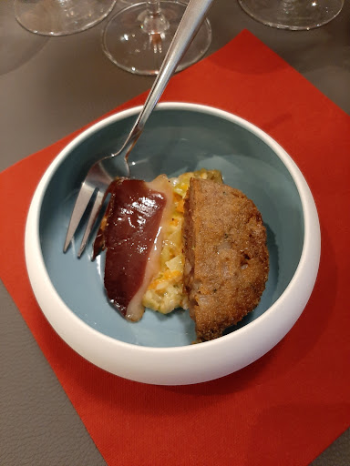 Je suis très surprise de voir que mon avis diverge autant de ceux des autres. Je suis loin d'avoir été conquise par ce restaurant. Premièrement, le délai d'attente est juste interminable (50 min rien que pour avoir la mise en bouche qui était froide et identique pour toutes les tables donc je ne comprends ce délai et rajouter une heure entre chaque service). Ensuite, certes la présentation des plats est très soignée mais pour ce qui est du gout en bouche c'est autre chose. Beaucoup d'élément était trop salé et le dessert était très loin de nos attentes. Le chou était congelé à l'intérieur, la glace vanille ne goutait absolument pas la vanille, la mousse au chocolat n'a pas non plus ravi nos papilles... (et le délai d'attente pour le dessert était aussi long que pour tout le reste). Bref, ça ne suivait vraiment pas en cuisine. Mention spéciale tout de même pour la sole qui quant à elle était délicieuse (mais son accompagnement trop salé) et le vin italien qui était un régal pour le palais. Ensuite, il faisait une chaleur étouffante dans la salle de restaurant... Je n'ose même pas imaginé ce que cela donnera en été. On a du attendre la fin du service pour enfin avoir une fenêtre ouverte et un peu d'air frais. Les deux serveuses étaient agréables, souriantes...