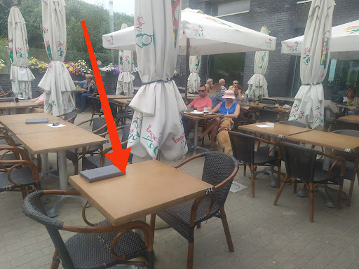 Ik heb 3 kinderen en heb in enkele horeca zaken al vanalles moeten verdragen qua kindonvriendelijkheid en/of antipathie van personeel.Wat ik daar heb meegemaakt staat zeker in de top 3 van het meest onbeschofte personeel waarmee ik geconfronteerd werd, mevr. manager inbegrepen. Alleen met een baby en twee jonge kinderen.Ik dacht "er is een speeltuintje,als ze niet rustig kunnen zitten aan tafel kunnen ze er zich uitleven." Want op eerste zicht LIJKT dat café restaurant gezinsvriendelijk,schijn bedriegt. Het terras was om 11u55 al goed vol. Er bleven nog enkele tafels over. Ik had 3 keuzes.In de volle zon (niet echt aangeraden met een baby en een kind van 3,een parasol openen was voor hen zelf geen optie die daar bijstond!).Ik had ook keuze om aan een tafel te zitten vlak naast luidruchtige kinderen, geen probleem op zich,maar de jongste sliep dus ja..Ook om er te geraken moest ik me met de buggy doorwringen tussen al de stoelen en het was 4 rijen tafels ver van de speeltuin.Tenslotte één klein tafeltje vlak bij de speeltuin,DEELS onder een parasol, waar mijn kinderen dan niet onnodig mensen zouden storen door mogelijks heen en weer te lopen van de speeltuin,waar ik ook sneller zicht kon hebben mocht er iets gebeuren,maar de buggy waarin mijn jongste sliep,ook niet zou storen vlak bij andere mensen hun stoelen.Helaas begreep de weinig behulpzame man,mijn praktische redenering niet,en vertrok met opgeheven schouders.Ik heb nadien 'gedurfd' om dat klein tafeltje 7cm te verschuiven onder de parasol om iets meer schaduw te geven aan mijn driejarige.Ik kreeg in de 5 daarop volgende seconden,diezelfde man alsook een ontzettend brutale vrouw,de manager nog ook,dat ik de passage hierdoor stoor voor haar personeel en hun plateaus...Ze wees naar de stoel waarop mijn zoontje zat.Ik zei dat de stoel nog zelf niet onder tafel was verschoven(98cm en 14kg...plaats genoeg om die stoel onder tafel te zetten!!).Ik kreeg zelf niet de tijd,noch recht,om zijn stoeltje onder tafel te schuiven!(Zelf heb ik jarenlang in de horeca gewerkt met smallere ruimtes tussen de tafels!)Die mevrouw vond het nodig om mij belachelijk te maken voor iedereen door mij op onbeschaafd manier continu te onderbreken zodra ik amper twee woorden uitsprak.Ze stond meteen in defensie modus met vooroordelen ipv als goede baas te luisteren naar klanten.Toen ik vroeg om te stoppen mij steeds te onderbreken,stoof mevrouw meteen op en zei kortaf "dan sluiten we hier af"om mij nadien gewoon kinderachtig te negeren omdat ze zich op haar lange tenen getrapt voelde.De menukaart aanbieden hebben ze zelf niet gedaan of helpen om dan misschien de parasol enkele cm's naar de tafel te verschuiven.Ze hebben ongelooflijk onbeschoft gedaan,mij met 3 kinderen afsnauwen omdat ze geen goesting hadden om slim,professioneel en gezinsvriendelijk te handelen.Hoe je nog als bazin dit gedrag durft goedpraten.UPDATEvolgend op antwoord.Vijandig een klant aanspreken,maar ook scenario's onbestaande conversatie verzinnen.Begrijpend lezen zoals mensen één zin laten uitspreken,lijkt moeilijk.Ik heb niet geschreeuwd naar de kelner,ik zei 'neen bedankt,liever hier',en hij stond 4 rijen verder!(Details maken véél verschil)aangezien ik amper erdoor kon met de buggy.Hij liep dan gewoon weg.30cm is zeker overdreven zoals uw rijke verbeelding.U heeft geen goeiedag gezegd,noch lief gevraagd.Uw eerste toon was streng,u vond het nodig om hoogstaand te doen toen u mij aansprak,en geen enkel moment heeft u de uitleg die u hier op Google geeft,verschaffen noch heeft u mijn wens als klant laten uitspreken.U faalt volledig als baas die haar rust kan behouden en objectief kan handelen.Als zaakvoerder dient u beter te kunnen weten,luisteren en oplossingen te bedenken in alle rust ipv mensen meer op stank te jagen en ze de uitgang te wijzen omdat het u niet zint.Soms willen klanten vreemd genoeg ergens anders gaan zitten dan dat er hen wordt opgelegd,niks vreemds aan,en horen graag een 'goeiedag' als ze binnenstappen.Verassend hoe u zelf openlijk liegt.Een mens maakt inderdaad wat triest mee,zeker...
