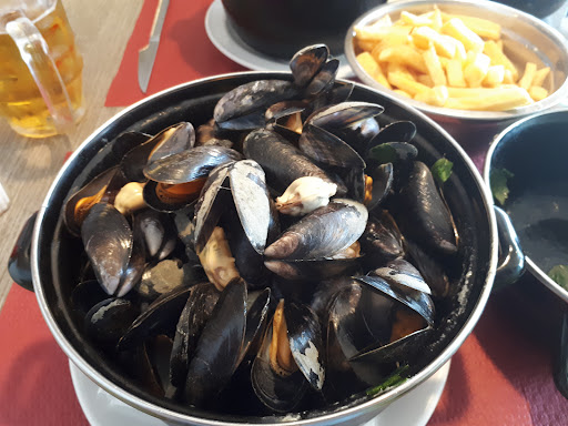 Read moreMauvaise expérience, et je mets une étoile car je ne peux en mettre 0. A éviter !!!!! Pour résumer, nous sommes arrivées un peu par hasard, j'ai demandé à un serveur la carte, en expliquant que nous allions nous installer en terrasse. Je croise une second serveur je lui dit que nous serons à la terrasse au fond. Après 20 minutes d'attente un serveur arrive, je fais un signe pour qu'il vienne nous voir et nous explique qu'il ne s'occupe que des commandes de boissons et que nous devons voir avec un de ses collègues "je vous laisse y aller" je dois donc retourner dans le restaurant pour daigner avoir un serveur. de nouveau une longue attente on vient prendre notre commande (restaurant quasi vide et une dizaine de personne en terrasse déjà en train de manger) les moules étaient vraiment minuscules (cf photo) les frites n'ont pas été servies en même temps, nous avons du les réclamer, et de nouveau de longues minutes avant de les avoir, et quelles frites !!!! médiocre au possible, impression de cuite dans une vieille huile. Du coup moules froides, frites mauvaises, cheveux dans les plats, assiettes mal dressée (sauce sur les bords ayant coulée sous l'assiette). Nous ne terminons pas le repas, nous le signalons au serveur et la, rien pour nous essuyer les mains après avoir manger des moules. Je fais part de mon mécontentement auprès du serveur qui ne semble pas nous croire, on le voit aller en arrière resto, et revient en nous disant qu'il ne peut rien faire. des plats très chers pour une si mauvaise qualité, un service plus que médiocre, long, et l'hygiène laisse a désirer (poubelle qui déborde +++ dans le restaurant) et aucun geste commerciale pour tout ça ! nous aurions du lire les avis auparavant, nous n'y serions pas allées, cela...
