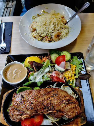Read moreNous avons été manger ce soir. Très mauvaise expérience. Nous rentrons dans le restaurant, le serveur ne nous remarque pas, soit. Les couverts étaient sales. Nous passons commande : un scampi à l’ail et une pâte carbo pour ma part et pour mon compagnon : un saumon fumé et une pâte carbo également. Nous recevons nos boissons sans verres pour les déguster sauf que quand nous demandons ceux-ci, le serveur nous regarde bizarrement et en prime nous donne des verres sales. Finalement nous avons bu à la bouteille. Nous recevons l’entrée assez rapidement. Je reçois des scampis à moitié décortiqué et probablement dégelé, ma salade n’avait qu’une goute de vinaigrette (ce n’est pas un euphémisme). Mon compagnon à quant à lui reçu un saumon industriel, certainement acheté au supermarché du coin et posé dans l’assiette comme tel. Nous recevons le plat presque qu’instantanément après avoir été débarrassé de l’entrée, à croire qu’ils étaient préparé à l’avance. La douche froide : aucun goût, le fromage était imposé directement sur l’assiette (vraiment énormément de fromage alors que nous n’en avions pas commandé/demandé). Il y avait tellement de sauce (enfin de crème), que le tout baignait. Nous n’avons pas fini nos plats et sommes partis. Le tout pour un montant ridiculement très élevé. Le serveur à vu que nos plats étaient à 7/8 encore plein et ne pose aucune question. Le décor est très beau et sophistiqué mais croyez-moi, ne vous y fiez pas...