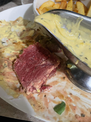 Als unsere Gruppe angekommen ist, und wir auf unseren tisch geführt wurden war erstmal Stillstand, 40 Minuten saßen wir da ohne dass uns jemand nur einen Augenschein beachtet hat, obwohl wir direkt beim Eingang saßen! Als Die Kellnerin uns dann irgendwann beachtet hat nahm sie unsere Bestellung auf die Getränke und die Vorspeise kamen recht flink, jedoch war da schon der erste Fehler das Brot war steinhart, Als ich dieses Brot essen wollte fielen mir meine Zähne fast aus, und des weiteren bezahlten wir für 2 Kleine Käsekroquetten 10€!!! Aber die Hauptspeise war noch viel schlimmer Wir Haben Steak, Muscheln und Nudeln bestellt, Die Steaks waren Fast alle Blutig bestellt jedoch meinte ich mit Blutig nicht dass das Steak roh kommen sollte, Auf Nachfrage hin hat die Kellnerin das Steak wieder mitgenommen und uns das Steak nach 10 minuten wiederzurückgebracht und das Steak war Staubtrocken und nicht mehr zum Verzehr geignet, Von 7 Portionen Fritten waren 3 Portionen Kalt, Die Muscheln Waren Faul und Noch mit Meersand befüllt, Die Nuddeln waren Lauwarm und ungeniesbar, die Nuddeln haben in der Sauce geschwommen, Als Wir die Kellnerin auf dieses Grausames Essen angesprochen haben, kam als Antwort: „Dann gibts kein Amaretto für euch!“ Ohne überhaupt zu Fragen was das Problem sei, als es dann ums Bezahlen ging war die Rechnung Viel zu Hoch und wir wurden für Wein berechnet den wir nie Bekommen haben, Der Kellner hat dann nach langem diskutieren den Wein von der Rechnung abgezogen, Des Weiteren hat er noch eine Weitere Pasta Hinzugefügt und da die Rechnung fast unmöglich war zu Verstehen haben wir fast 40€ zu viel Bezahlt. Also das war schon fast ein Traumatisches Erlebnis...