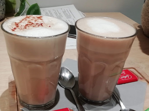 Read moreHeel vriendelijke bediening. Veel keuze op de kaart. Alleen was ik teleurgesteld van mijn feta slaatje. Er stond op de kaart: o.a met zoete aardappelfrietjes, geroosterde paprika en spinazie,… Ik heb maar 1 klein stukje paprika gevonden over de hele sla, geen zoete aardappelfrietjes en geen spinazie. Ik ging ervan uit dat ze die ingrediënten niet meer hadden? Dus ik deed niet moeilijk. Vond het dus best prijzig voor wat ik maar kreeg. Op het einde kwamen ze spontaan af met een mini kommetje zoete aardappelfrieten. Dat maakte het dan weer een beetje goed. Zoals eerdere reviews klopt het dat het daarbinnen heel warm is. Maar als je een t-shirt aan hebt is...