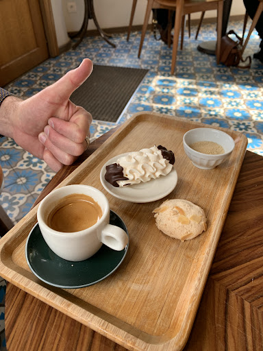 Read moreOp zondag komen brunchen met 2p na een reservatie geregeld door onze BnB-eigenares. Binnengekomen, concept van buffet werd niet uitgelegd, er werd ons niets gevraagd, gewoon een glas fruitsap voor onze neus gezet en een bestelling voor koffie werd genomen. Dan zelf gaan vragen wat de bedoeling was: aanschuiven aan buffet. Buffet was basic, 1 soort vlees, 2 soorten kaas, geen pistolets of sandwiches, stokbrood werd niet aangevuld... Dessertjes waren wel lekker en er was wel lekker chocoladebrood en zelfgemaakte confituur. Voor 2x€24 (€48) hadden we echter wel iets...