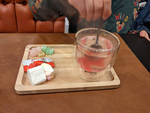 Maar zeker aan te raden. Leuke kinderdessertjes, al zijn de oortjes van de beer 🐻 niet makkelijk is, omdat ze gesmolten theesnoepjes erin vallen. Al is dat...