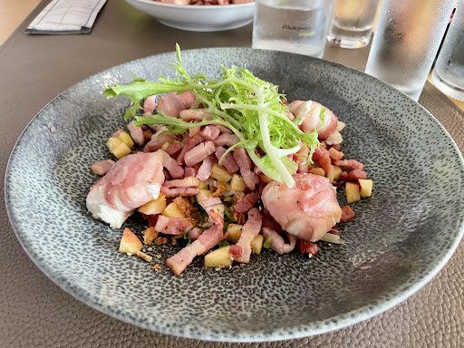 Read moreWarme zomeravond, gekozen voor deze gezellige taverne. Zeer mooi terras. Veel schaduw. Vriendelijke bediening. Gekozen voor een glas witte huiswijn. Niet te zoet, mooi uitgeschonken glas. Mijn vrouw gekozen voor de suggestie Salade vh huis. Zeer uitgebreid met garnalen, mozzarella en zalm. Mooie presentatie. Ik klassieker spaghetti met kaas. Klein minpuntje: sausje mag ietsje warmer en kaas apart uitserveren. In de zaal veel ruimte. Klassieke indeling met een moderne toets. Aangenaam lekker genieten. Komen zeker nog...