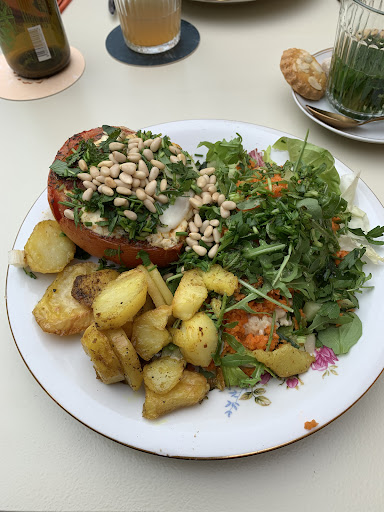 Read moreWe waren hier op het onverwachte voor een ‘vlugge’ lunch, het bleek een topper te zijn, wat een trendy interieur! Het zonnig en namen plaats op het kleine maar heel fijne tuinterras/koertje. Het leek wat zuiders. Mooi gegeven vond ik ook dat er één (1) gerecht op het menu staat dat dagelijks wisselt, vandaag was het een stoofpotje met vis, aardappelen en groenten in pickles sausje, heel lekker en ruim voldoende, zeker prijs/kwaliteit.we dronken daarbij een rosé wijntje dat ons zeker kon smaken. De bediening zeer duidelijk en vriendelijk. Dit was een zeer geslaagde middaglunch in een heel mooi kader, ik wil nog even vermelden dat ze een van de properste, leukste sanitair hebben dat ik al...
