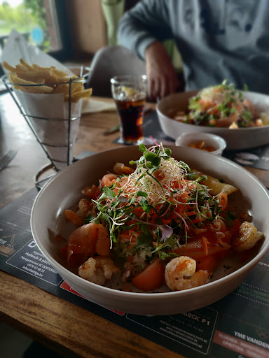 De twee sterren hebben betrekking op de mooie omgeving. Het restaurant is een omhoog-gevallen cantine zelfs géén ster waard. Alles had géén smaak in het vispannetje moesten we in de véél te zoete saus op zoek gaan naar een paar stukjes goedkope vis Een grote berg sla en véél gerapste wortels om het bord te vullen zonder dressing een wat droge bedoening De frietjes (uit de diepvries) waren zelfs niet genoeg gebakken.... zo van die bleke met moeite één keer ingedompeld en veel te vet geserveerd. wel verse stukjes brood met boter die wegliep uit de kleine portieschaaltjes van Rochefort. bij de voorschotel waar gambas werden geserveerd die ook geen smaak hadden was er geen stukje citroen voorzien (wel na vraag een paar stukjes gekregen...... ook naar doekjes om de vingers wat af te vegen na het eten van de niet gepelde gambas hebben we moeten vragen en dan kregen we één doekje voor twee personen Als dessert een klein spietje appeltaart met een klein bolleke ijs zonder slagroom De Irish-Coffee was wel naar behoren Per slot vonden we de prijs wel behoorlijk héél duur voor de minimale kwaliteit...