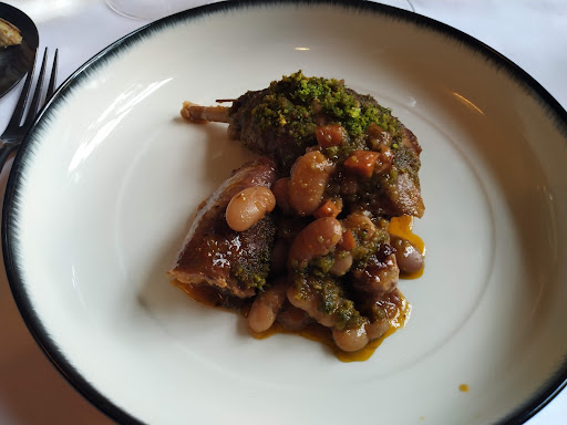 Ikzelf had stoverij van wild met 'pommes duchesses' , de smaak was oke, maar de 3 loodbolletjes vrij riskant (gelukkig tijdig opgemerkt op de tong voor ik er een tand op brak). De pommes waren schraal, 4 stuk(je)s, bolletjes zo groot of een kauwgombal 2,5cm doorsnee, smaak noch textuur om over naar huis te schrijven.