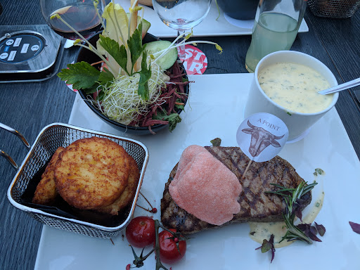 We had ordered drinks at first but the waiter mixed it up and then refused to acknowledge his mistake. As we were hungry we decided to order some food. We had ordered a steak à point with béarnaise sauce, stew prepared with Abbey beer and a goat cheese salad. The presentation looked promising and although the sauce was freshly made they gave me a "bien cuit" steak while I had ordered "à point". The salad on the side looked dry and old,...