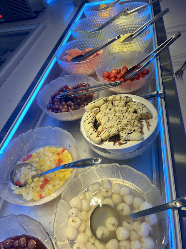 Het eten als je dit wilt noemen is gewoon niet lekker niet warm te vet en af en toe niet gaar ik heb gewacht totdat de bakken opnieuw gevuld waren was dat tenminste warm. Ook was dit niet je favorieten. Het enige wat goed was het drinken. De prijs was het niet waard. Kwaliteit is er gewoon niet.