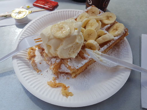 Helaas 1 ster inleveren sedert IJskafee haar Brusselse wafels niet langer meer vers bakt, maar haar voorgebakken wafels 'ijskoud' opwarmt. Jammer! aanvulling: Reactie van IJskafee (dat de wafels ter plaatse moeten worden opgegeten en niet meer naar huis mogen genomen worden wegens fragiliteit) is volledig naast de kwestie. Mijn punt was dat die wafels vroeger vers ter plaatse werden gebakken (en thuis smaakten die heerlijk en warm hoor: niets mis mee). Tegenwoordig worden ze er voorgebakken uit een kast gehaald en ter plaatse opgewarmd, met veel smaak- en kwaliteitsverlies tot gevolg. Dus...
