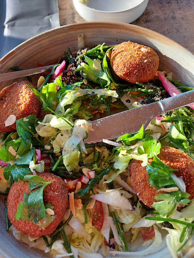 Read moreLekker, maar de porties zijn te klein volgens de prijzen, zowel bij drank, hapjes als hoofdgerecht. vb: 15€ voor 5 kaasbolletjes (= 3€/stuk), 9.50€ voor Aperol Spritz waarvan zeker de helft van het glas gevuld was met ijsblokken en dan nog 1/4 Aperol Sprits, Ceasar Salade was lekker maar toch te weinig als hoofdgerecht ook geen tomaat, olijf of extra vinaigrette (vooral verschillende soorten sla), ook een glas wijn was maar een kleine hoeveelheid. Je mag deze prijzen rekenen, maar zorg dan dat de klanten voldoende hebben. Nu komt het over dat je nog extra dingen moet bestellen om 'genoeg' te hebben. Ook jammer dat je van binnen geen uitzicht hebt naar buiten. We voelden ons wat opgesloten tegen de donker muur zonder ramen en buitenlicht. Buiten is het wel leuk zitten, al kan de wind een...