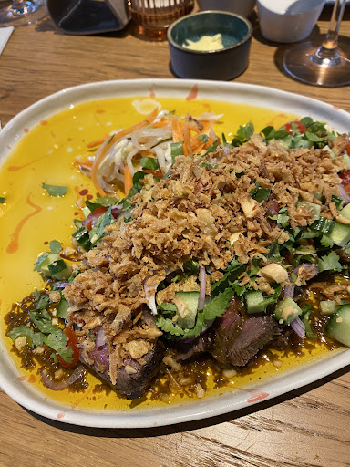 Unique restaurant in the heart of Dixmude. International cuisine with stars and stripes. Thai beef salad is the greatest ever eaten in Belgium. Vegetarians are welcome. All dishes prepared from scratch. The nice and friendly hosts welcome you in their nicely and internationally decorated place. So food, atmosphere and decoration match 100%. We’ll come back. Proficiat...
