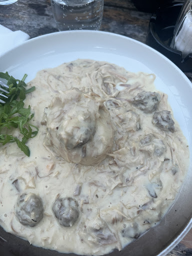 Read moreAbsolute afrader, aperitief was er redelijk snel maar het bord warme hapjes liet meer dan een half uur op zich wachten en dan was het nogmaals zeer lang wachten op de hoofdgerechten. Bedienend personeel deed wat ze konden doen om de klanten tevreden te houden maar een vol terras, volle tent en dan nog enkele tafels in het restaurant zelf gecombineerd met een te grote menukaart waardoor de keuken totaal niet kon volgen. De (huisbereide) vol au vent was niet te eten, eerst maar 2 echte kleine stukjes kip zonder balletjes en achter de champignons moest je heel erg zoeken. De eerste portie teruggestuurd en de 2de portie bevatte 5 balletjes maar nog altijd maar 3 kleine stukjes kip en voor de rest allemaal draadjes kip met een koud bladerdeegkoekje die bijgevolg taai was. De eigenaar erover aangesproken maar die persoon kan totaal geen kritiek aanvaarden! Hem de tip gegeven om zijn kaart te halveren en eens de vol au vent te gaan proeven bij Celine’s in Kruisem die je daar krijgt voor dezelfde prijs maar die om duimen en vingers bij af te likken is maar meneer maakte al 17 jaar zijn vol au vent op zijn manier en ging dit niet veranderen, hij heeft de vol au vent van de rekening afgehouden en daar was voor hem de kous af. 1 tafel van 2 personen vlakbij ons waren de enige van de ongeveer 100 klanten die niet klaagden en zij kregen drank en koffie gratis terwijl de eigenaar zich persoonlijk had moeten excuseren bij zijn klanten maar dit was duidelijk teveel gevraagd. Zelfs zijn personeel zei dat het heel moeilijk samen te werken is met hem omdat hij geen kritiek...