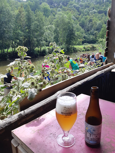Read moreWe can pay with cash, payconic or bank transfer (thanks for making that possible!!). One can get there either through the national park (5 eur entrance, nice views) or through a public foot path starting from the same place or by foot from the Lesse Kayaks, by the river (last two options are at no cost). When sunny, it's pretty busy and also noise from the many kayacs passing just by the terasse. The beers are tasty. Local beers, such as Marie Blanche in...