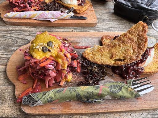 Read moreImportant: You need a reservation to have lunch here! Unfortunately we found out when we arrived, so half way our hike. If you donât have a reservation you can only order a drink and a cake for take out. Some people write it is a vegan place but that isnât correct. They also serve meat. The atmosphere was not nice this Sunday, a lot of people arrived by kayaks were screaming inside the restaurant like they were on a beach party. It didnât match the vibe of a nice...