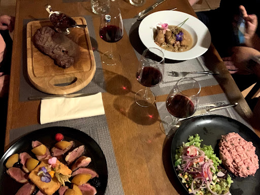 Absolutely magnificent! Our experience started when I called to make a reservation - only challenge being that I don’t speak any French, and the lady who answered didn’t speak any English. With much giggling we made ourselves understood (I was so proud of myself) and when my husband and I arrived at the restaurant at the agreed time the same lady welcomed us so warmly with a big, kind smile. We shared two gigantic steaks (one entrecôte - think boneless ribeye; and one BBB steak - think eye fillet) with perfect mushroom sauce. We each had a delicious glass of red wine (bargain at €2.50 glass) - should have asked where it was from. We visited on a Friday evening and the place was buzzing with locals. I really enjoyed that this was warm service and great, honest food, without any fuss and pomp that are to be found in many places in the region. Special thanks to our waitress who made us feel so at ease and welcome despite not...