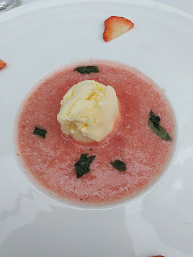 Read moreC'était correct. Personnel sympa. Patron un peu familier... Nous avons pris en plat : *boulets (sauce moyenne) demandés avec des croquettes...servis avec des frites (heureusement, voir plus bas) *filet de poisson (lequel?) Délicieux avec sauce citronnée et pdt vapeur *canard (Pas demandé pour la cuisson (un peu trop saignant) demandé avec croquettes trop cuites et dégoulinante de graisse (brunes foncées...huile friteuse trop vieille??). Pour le dessert : *sorbets excellentissimes (d'un producteur de la région), *soupe de fraises basilic avec boule vanille très bon.