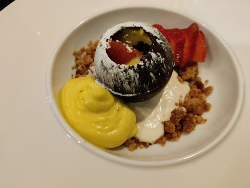 Read moreNous y avons très bien mangé. Menu 4 services, ce qui nous a permis de goûter à 2 les 4 entrées proposées et elles étaient toutes délicieuses. L'ensemble du menu était légèrement perfectible, mais dans l'ensemble très bien maitrisé. Les gambas épicées s'équilibrent très bien avec la burrata. Les plats choisis étaient délicieux aussi (ravioles de gambas et langoustines et le ris de veau). Le dessert et le fromage très bons aussi. Soyons honnêtes ce n'est pas l'endroit où nous avons découvert de nouvelles saveurs ou associations de goûts surprenantes, mais les plats étaient bons, équilibrés et maitrisés, bref nous nous sommes régalés. De plus la terrasse entièrement refaite a tout son charme. Le personnel très bien aussi. On y...