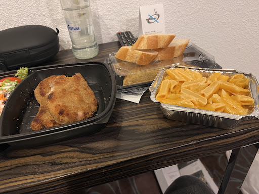 Read moreDéplorable -- Je n'ai pas l'habitude de laisser des avis mais je me dois de le faire cette fois. Je commande sur deliveroo une escalope de dinde milanaise avec des pates (repas simple et difficilement ratable) pour pas loin de 30€ (marge deliveroo + livraison comprise). Pour faire simple, ma viande n'était pas cuite (rose pour de la dinde?) et de très mauvaise qualité. L'impression de manger une semelle de chaussure. Les crêpes aux sucre, sans sucre ? Très très grasses néanmoins laissant un gout pâteux dans la bouche désagréable et qui ne part pas ! Mais le pire ce sont bien les pates. Bourrés de sauce et d'huile... Un gout très très prononcé, ce qui ne m'aurait pas géné si il avait été travaillé, il est juste gras et horrible ! Aucune mention également mais on ne dispose d'aucun couvert, j'ai eu la chance de manger (ce que j'ai pu en manger) avec les mains. Je mettrais la note de 3/10 pour les crepes 2/10 pour la dinde et 0/10 pour les pates.