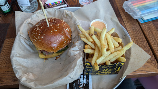 First and foremost, let's talk about the burgers. Oh boy, they are absolutely mouthwatering! The menu offers a wide variety of options, from classic cheeseburgers to creative and unique creations. I tried their signature Manhattan Burger, and it was a flavor explosion in every bite. The patty was perfectly cooked to my liking, juicy, and seasoned just right. The toppings were fresh, and the bun was soft and delicious. Each ingredient complemented the others, resulting in a burger that was simply divine.