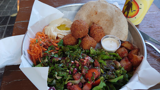 Read moreDelicious! Happened upon this little spot on a quiet Sunday eve. Very welcoming and cozy with plenty of seating. Got the eggplant dip which was incredible - Smokey and sweet! Would come back again and again for that! The hummus with whole wheat pita - again, a winner! Smooth and creamy with little pomegranate seed accents. Super surprise was the falafel - perfectly crispy on the outside but light fluffy and flavorful inside! My favorite falafel ever. If you are deciding between this gem and one of the many frits/burger places near by - there’s no decision ,...