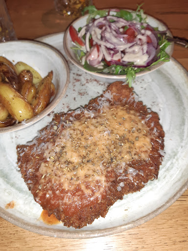Eind juli hier gegeten met een groep van 7 personen. De ontvangst was vriendelijk en correct. De tafelindeling raar, er moest 1 persoon apart zitten, hebben dan zelf de ene persoon op de hoek geplaatst zodat deze er toch bij hoorde. We bestelden ons uitgebreid aperitief met verschillende sharing gerechten: Bruschetta, Plukbrood met Camembert en Patatas Bravas. Deze waren lekker en ook voldoende qua hoeveelheid. Een klein bordje en vorkje per persoon was handig geweest, nu moesten we foefelen met ons serviette. Als hoofdgerecht mochten we maar 4 (ipv 5 zoals op de kaart aangegeven) gerechten kiezen. De keuzes liepen uiteen over pastas, mosselen en scampi's. Alle gerechten kwamen netjes samen uit de keuken. De porties waren ruim, de meningen verdeeld. Niet alles leek even vers, de mosseltjes, nochtans een suggestie, bleken vol zand te zitten en ook overgaar. Jammer. Het dessert was niet huisgemaakt, wat nog begrijpelijk is, maar zorg dan voor een goeie leverancier ipv goedkope diepvries uit de groothandel, een zware teleurstelling dus. Het is een goeie plek om een eenvoudige maaltijd te nuttigen, echter de prijs die gevraagd wordt is niet correct tov de...