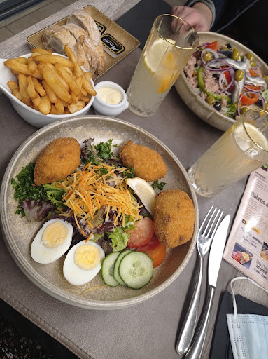 Read moreNous sommes arrivés vers 12h45. Après avoir commandé 3 menus du jour, on revient vers nous en disant qu'il n'y en a plus que 2. Finalement après 5minutes, on revient vers nous une seconde fois pour nous dire qu'en fait il n'y en a plus du tout ! Nous avons du choisir autre chose. Dommage. De plus, après avoir demandé des pâtes au saumon cuit (commandé à un étudiant tres sympathique!), je reçois des pâtes au saumon fumé. La serveuse qui nous apporte les plats ne nous dit pas bonjour et me dit que le saumon fumé est du saumon cuit (je suis enceinte, je sais de quoi je parle)😅 avant de finalement retourner mes pâtes en cuisine avec un regarde très froid. Dernièrement le temps d'attente était énorme. Je peux comprendre vu le monde mais au vu des désagréments que nous avons eu, je pense que le restaurant aurait pu faire un petit geste. Merci quand même à cet étudiant très agréable. Je préfère qlq qui se trompe que qlq qui ne dit...