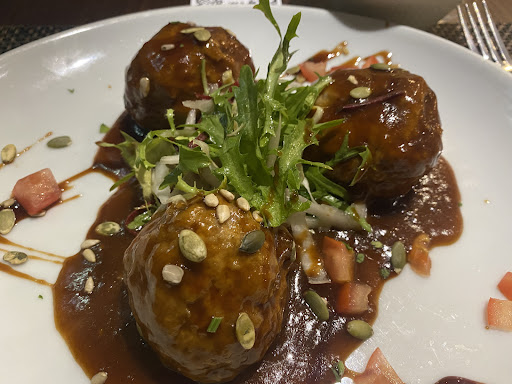 Très peu détaillé sur certains plats, et surprenant à la dépose sur table. -sucré salé sur des plats traditionnelles sans même prendre compte de diverse allergènes et restrictions alimentaires !!!