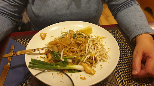 Read moreÇa faisait plusieurs fois qu'on voulait y aller, mais ça ne s'arrangait pas. Et bien je regrette de ne pas y avoir été avant. C'est vrai que l'extérieur n'est pas terrible, mais un fois à l'intérieur, la déco n'est pas trop chargée vous met dans l'ambiance. C'était vraiment très bon. Les petites brochettes en entrée : elles étaient tellement appétissantes que je me suis rué dessus sans les photographier. Le poulet curry rouge, le pad thaï et le porc ail et poivre vert également délicieux. Malheureusement, il y avait un groupe bruyant, et je n'ai pris de dessert. Les serveuses sont souriantes et efficaces. On y retournera très bientôt...