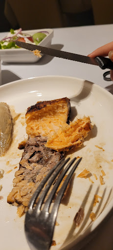 Read moreWat zich aandiende als een fijn etentje met als welkom ook mooi hapje als amuse en een Italiaans plankje om te delen eindigde in een echte teleurstelling. Het hoofdgerecht was een goed gegrilde steak die jammer genoeg onder het zeezout werd bedolven. De bijgerechten :plat gestoofde witloof ( diepvries?) te weinig gebakken frieten( diepvries?) Een klein bakje sla. De bearnaise saus proefde eerder naar Hollendaise saus met wat dragon. Wijnen erg prijzig en enkel de huiswijn per glas te verkrijgen (7€) De rekening was ook erg gepeperd. Toen we de afrekening kregen snapte ik waarom de prijzen niet op het menu on line staan. 75 € voor een menu met een gedeeld voorgerecht ,een hoofdgerecht een glas cava een glas wijn en twee bruis water.... De eerlijkheid biedt me wel te zeggen dat het personeel vlot en vriendelijk was en dat we de koffie van het huis aangeboden kregen omdat we wat hadden...