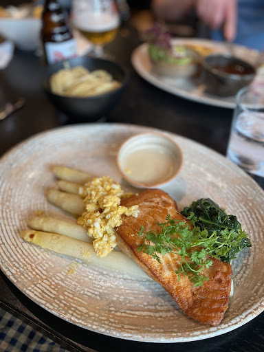 Eten: We waren met een redelijk grote compagnie, iedereen mocht kiezen wat hij wou eten, geen beperking van een aantal gerechten per tafel. De cheese burger was smaakvol. Hiermee had je voldoende gegeten. Je kon kiezen om hierbij frietjes of Flore gras te eten, zelf had ik gekozen voor de frietjes, dit waren redelijk dikke frietjes maar wel goede frietjes. De wok was minder ons ding omdat er veel saus was en deze was olie-achtig. De salades vulden voldoende en waren lekker. Hun huissalade is een aanrader. De tomahawk moest je delen met twee personen, met 2 goede eters had je een groot stuk vlees. Daarbij werden gebakken aardappelen geserveerd en champignons. Wat wel vreemd was, was dat er ons gevraagd werd of we er nog frietjes/kroketjes bij wouden. Op de menu stond niet dat er bij de tomahawk al aardappeltjes bij waren. Daarom namen we frietjes en hadden we twee keer aardappelen op ons bord. Hierdoor kregen we niet al ons eten op. Het stoofvlees was lekker mals, hierbij kreeg je ook een potje met groenten. Het vlees dat we bestelden had een goede cuisson en waren een ruime portie, ook hierbij kreeg je een potje groenten en kon je kiezen uit frietjes of flore gras.