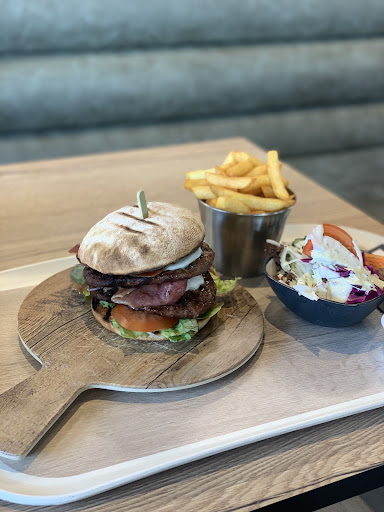 Read moreDifficile de mettre une Ă©toile en toute honnĂȘtetĂ©, c'est ma premiĂšre et je ne le fais pas Ă la lĂ©gĂšre. L'endroit est beau, un semblant de haut de gamme qui met en confiance mais c'est aprĂšs qu'on remarque les indicateurs de la cantine qui se cache derriĂšre. D'emblĂ©e le menu est cher, Ă la hauteur d'un restaurant de Louvain-la-Neuve mais avec le service inexistant d'un snack bas de gamme. Plateau et assiette en plastique, on reçoit un bipeur lors de la commande au comptoir. Service (trop) rapide, impossible de cuire une viande dans ces dĂ©lai et cela se ressent dans l'assiette. La viande fait pensĂ© a un recomposĂ© de viandelle Ă©picĂ©e recuit a la va-vite. Bacon a peine passable et sauce andalouse pour un burger vendu avec une sauce bbq, chercher l'erreur. Les frites sont bonne et la mayo sort des mĂȘme pot qu'une friterie donc bonne aussi. Cela fait maintenant 30min que nous avons quittĂ© les lieux et nous avons encore des hauts-le-coeur, le "repas" ne passe vraiment pas. On peut excuser beaucoup de choses mais ici rien ne vas et pour le prix c'est inexcusable. Nous nous faisions un plaisir de venir tester et on ne nous y reprendra plus. Bonne continuation, au plaisir de ne...