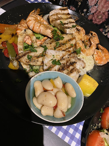 Wij waren al wat later op de avond toegekomen. Het was koud binnen. Deuren voor en achter stonden helemaal open. Er werkte een jonge gast die heel erg zijn best deed. De twee meiden deden al zijn harde werk teniet. De laatste klanten werden wat aan hun lot overgelaten. Na 50 min wachten komt 1 van de 2 meiden onze borden opruimen. (We hadden nog niet gegeten). Ik bestel water en krijg alleen een flesje. Ik had geen glas. Om dan uiteindelijk iemand vast te krijgen, ze waren te druk bezig met te babbelen tegen elkaar. We hadden terra mare besteld. Gamba´s, scampi´s leken allemaal gefrituurd en waren veel te hard gebakken. Tzatziki proefde niet zoals het hoort, tarama was precies aardappelpuree, de feta was niet lekker. Ik eet vaak grieks, dit was het zeker niet. Het gerecht was bombastisch. De weinige groentjes die er onder zaten waren helemaal warm van het vlees. De gyros, de worst en de gehaktbal waren lekker en de frieten die niet te hard waren ook. Gewoon een kleine tip, geen groenten in het gerecht ofwel leg je ze naast het warme vlees, serveer er een kleine griekse salade bij en een citroenschijfje voor bij de vis, dat zou al een grote meerwaarde zijn. We zagen dat al de klanten een borreltje met karpouzi kregen bij het afrekenen. Dat was blijkbaar alleen voor de vaste klanten.
