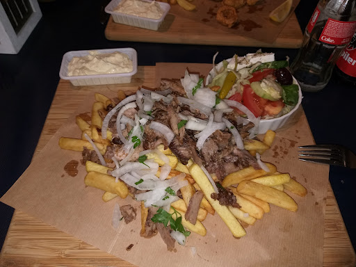 Read moreEen doordacht concept: de keuken bevindt zich in het midden met het restaurantgedeelte aan de ene kant (O'Geros) en de Griekse frituur aan de andere zijde welliswaar volledig afgescheiden van elkaar. In de "frituur" zelf, is het meestal pokkedruk en de plaatsen zijn vrij beperkt. Je zit vrij dicht op elkaar. Reserveren kan niet. Doch alles gaat vrij snel. Als je binnenkomt, heb je de eerste keer meestal niet door dat het om een frituur gaat terwijl je aan de toog moet bestellen. De keuze op de kaart is ruimschoots (vlees, vis, groenten ...) en is de typische Griekse streetfood aldus de eigenaar. De kwaliteit van de gerechten is uitstekend: verse producten van degelijke kwaliteit. De vleesgerechten zijn niet overkruid en vis wordt à la minute gegrild. Alle gerechten en ingrediënten worden op een houten plank of grote schotel geserveerd dus geen aparte borden hetgeen het superleuk maakt. Sommige gerechten vind je ook terug in het restaurant. Prijzen zijn gemiddeld doch je krijgt waar voor je geld. Meest gangbare betaalkaarten worden aanvaard. Vriendelijkheid troef. Wachttijden zijn beperkt zelfs als het bomvol is. Doch je moet in het achterhoofd houden dat je hier niet rustig kunt tafelen: net zoals in een frituur is het bestellen, eten en doorgaan. Parkeren blijft problematisch. Parking is te klein maar wordt deels goedgemaakt door de prima ervaring. Griekse streetfoold op een hoger...