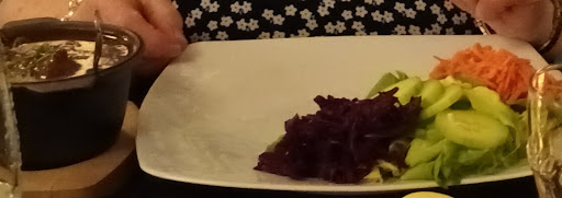 Was een gezellige zaak met goed eten. Er was één nadeel je kan slecht naar binnen met een rollator omdat het trappen zijn om binnen te komen. We hadden stoofvlees met frietjes. Stoofvlees zat in een klein pannetje en de friet...