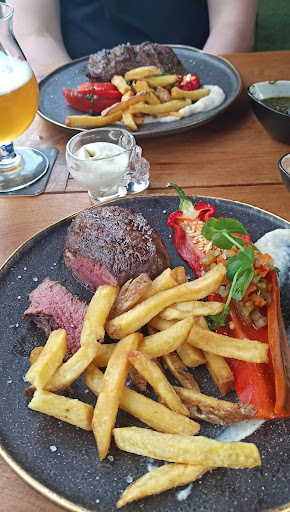Op het bord van de 2 steaks lag een gebakken paprika en een smeer bloemkool saus. Meer niet ! Na het melden van de slecht gebakken steak kreeg ik na een paar minuten een nieuwe. Tijdens het eten bestelden we nog drinken bij. Na 15min nog niks gekregen te hebben vroegen we of ze ons vergeten waren en ja hoor geen bestelling doorgegeven. Dus opnieuw besteld !