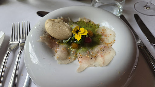 Read moreEen alcoholvrije pittige Bloody Mary met muskus- kaasjeskruid en zilt oesterblad uit eigen tuin, gevolgd door een frisse kalfstartaar met geitenkaas; met deze twee heerlijke amuses bracht Chef Vital onze uitgezweten zouten op deze eerste en legendarisch bloedhete Juli weer terug in balans. Een impressionistisch bord met carpaccio van heilbot, tomaatjes, knolselderpuree, quinoa, parelcouscous en uit eigen tuin geplukte eetbare bloemen, in een vijvertje van waterkersbalsem werd aan tafel gebracht door een beeldschone waternymf. Het riep instant het beeld op van Claude Monet 's waterlelies in zijn geliefde tuin te Giverny, twee zielsverwante kunstenaars... Pastinaakpuree met zeewolf in beurre blanc, gekroond met gefrituurde aardpeer was een delicatesse en de Caesar salade met rosbief en het oh zo lekkere blad van citroenafrikaantjes was een frisse smakenbom met verrassend accent. Eendenborst met butternut puree, witloof, wilde venkel en dressing van sinaasappel was een eerbetoon aan de haute cuisine uit la douce France. En wat kunnen we zeggen over het zelf gedraaide vanille-roomijs met fijn gesnipperde dragon en de mousse van witte chocola met krokante munt? Kan enkel zeggen dat ik hiervan nooit genoeg ga...