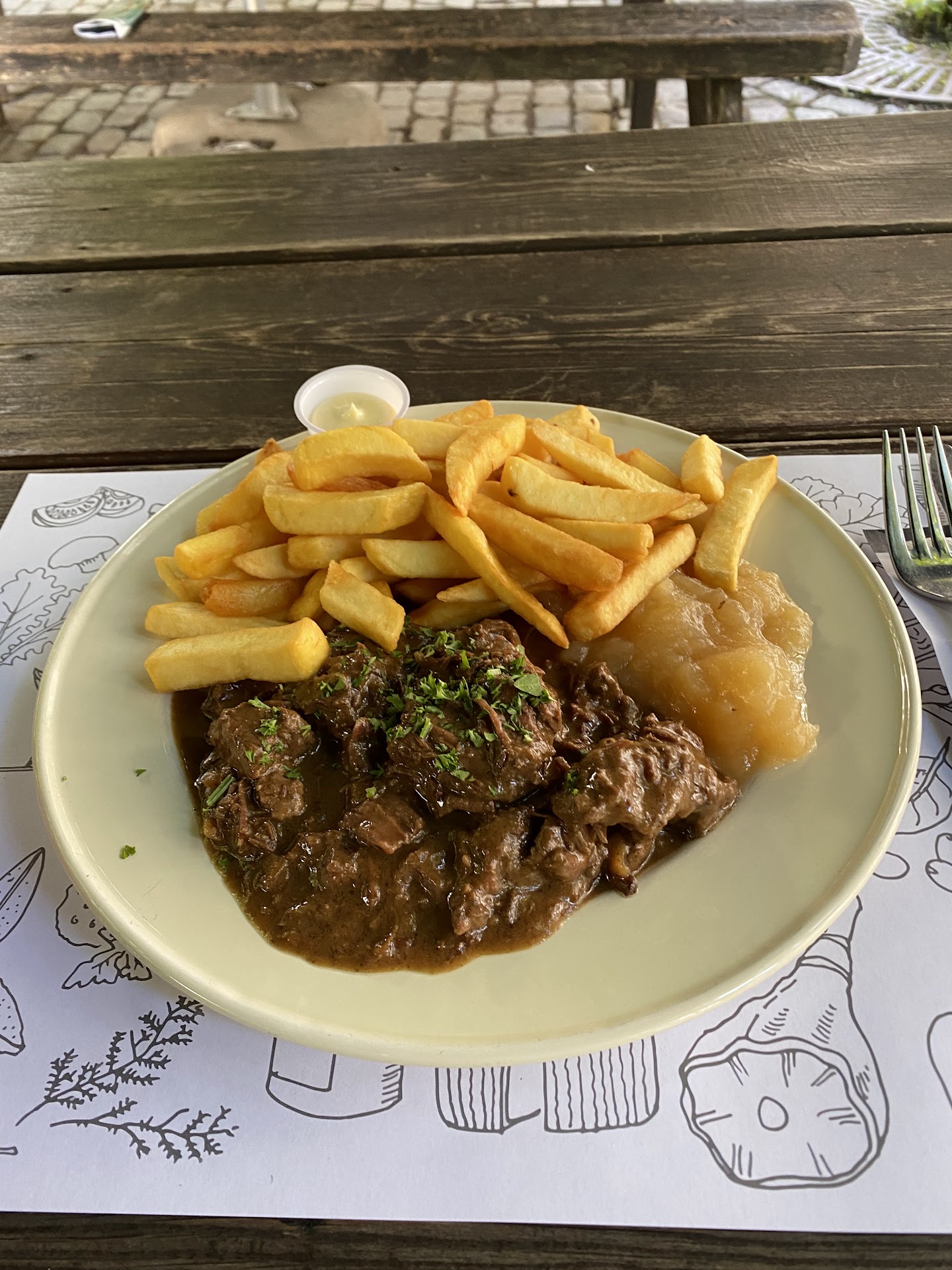 Read moreHele slechte service. Wij zijn gaan zitten aan een tafel bij andere mensen omdat het erg druk was. De tafels zijn groot dus hun zaten aan het ene uiteinde en wij aan het andere. De serveerder zag dat wij er gingen zitten omdat hij bezig was met de andere mensen te helpen. Hij wist ook dat wij wat wilden eten want dat hoorde hij. Na het menu te hebben bestudeerd hebben wij een aantal keer proberen contact te maken met de serveerder en serveerster. Zonder resultaat. Aan een ander tafeltje ging een groep zitten en die werden in no-time geholpen. Terwijl wij er al zeker 15 minuten zaten en wat we ook deden niet geholpen werden. Toen was ons plezier in het park ook ver te zoeken.