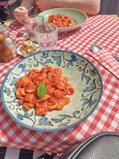 ย ย ย Read moreItaliaans restaurant in het centrum van Genk.. Hier moet een restaurant zich onderscheiden en dat is hier zeker gelukt.. De zaak zat vol op zaterdagavond.. Op de kaart staan verschillende gerechten die wat verschillen tov een traditioneel Italiaans restaurant.. Er staan enkele Zuid Italiaanse gerechten op uit de provincie Puglia.. Inrichting is Italiaans getint, zeker het terras met het wit rode blokjes tafelkleed.. Niet mijn smaak maar smaken verschillen.. Het eten was zeker lekker en smaakvol..het voorgerecht was goed gekruid en gevarieerd.. Puccia op het menu is zeker een aanrader..dit zijn kleine warme broodjes gevuld met ingrediรซnten uit het seizoen..Street food in Zuid-Italiรซ.. Porties zijn groot genoeg.. De tagliata di manzo was perfect medium gebakken en zeer mals.. Aardappelen uit de oven en spaghetti als bijgerecht waren lekker.. De huiswijn was ook zeer lekker (primitivo) Als afsluiter lekkere limoncello in een groot glaasje ๐ Hier komen we...