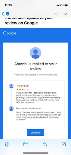 Read moreZoals gewoonlijk voel je direct welkom bij aankomst in Abtenhuis. Het eten was terug speciale zaken dat je thuis zelf niet zou klaar maken en het was super lekker. Ook meer dan voldoende en de combinatie met de wijn is perfect (volgens m'n tafelgenoten want ik ben Bob). Bediening is hartelijk (niet geforceerd) en geen stijve bedoening. 10/10 voor hun sommelier die verteld waarom die wijn bij dit gerecht wordt geschonken. Ook oog voor details bij bediening aan tafel, eerst de dames en dan de heren en bord zo op tafel met logo Abtenhuis bovenaan het bord. Prijs/kwaliteit kan je niet beter zijn bij Abtenhuis en dit weten andere mensen precies ook want ruim op voorhand moet je reserveren. En als je al van Oostende naar Geraardsbergen gaat om te gaan eten, dan kan het maar top zijn. Dikke proficiat aan Lieve en haar top team die ook al jaren...